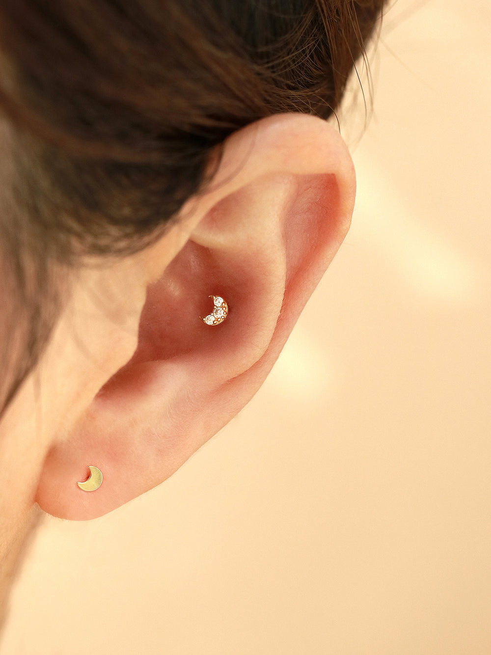 14K Gold Tiny Crescent Cartilage Earring 20G
