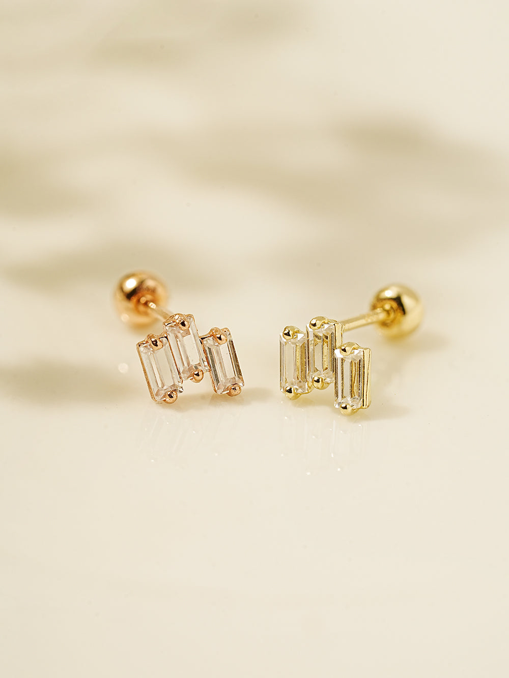 14K Gold Three Line Cubic Cartilage Earring 20G18G16G