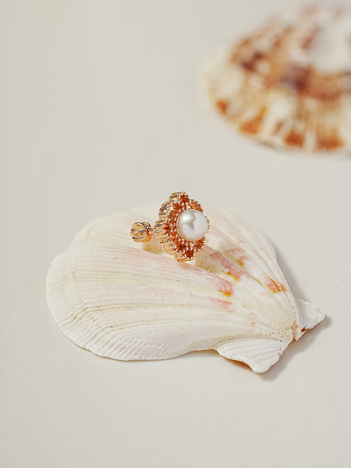 14K Gold Antique Pearl Cartilage Earring 18G16G