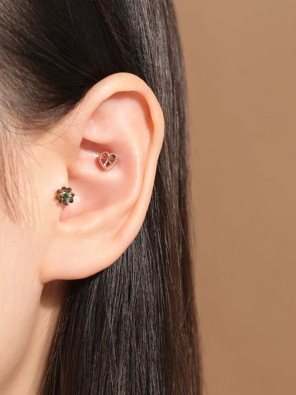 14K Gold Cutting 4 Petal Clover Cartilage Earring 18G16G