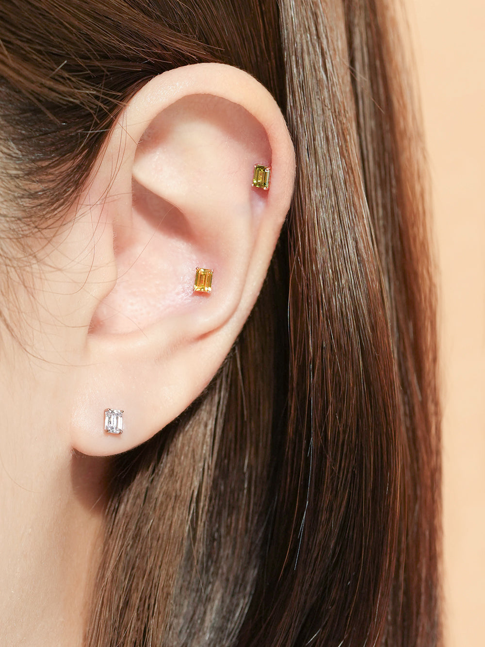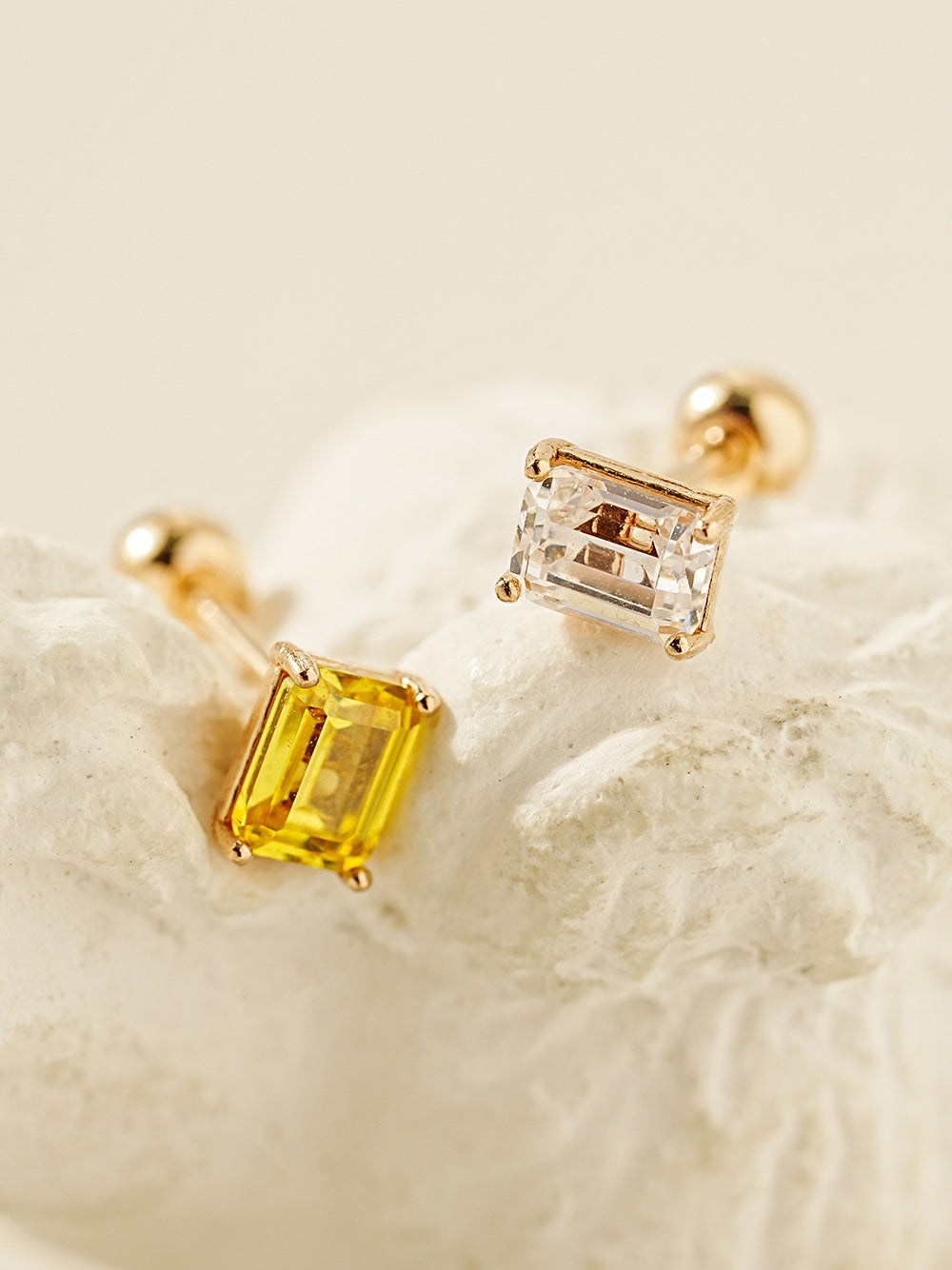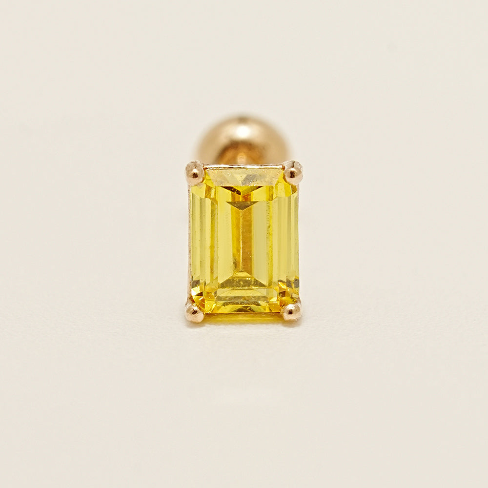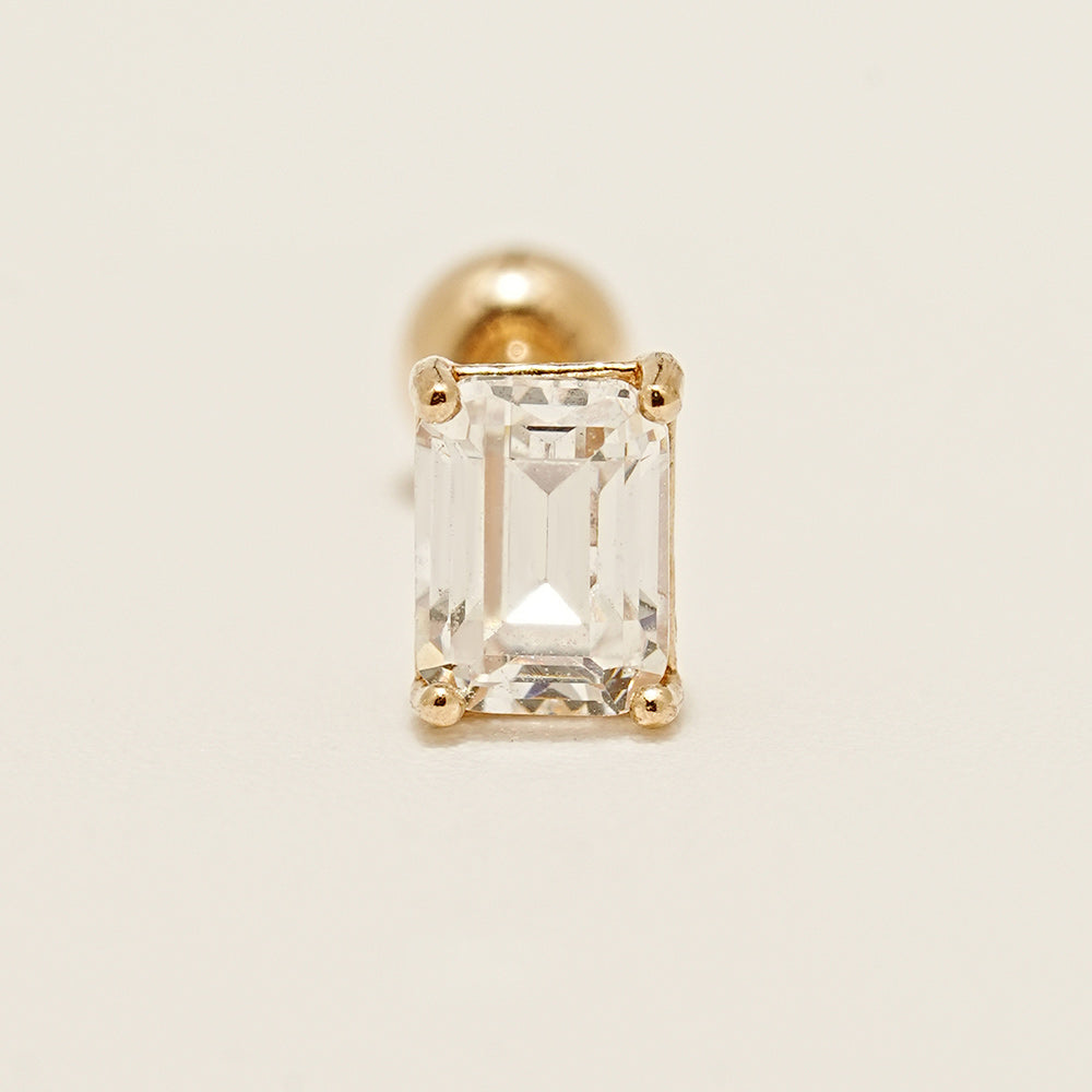 14K Gold Emerald Cut Color Cubic Earring 20G18G16G