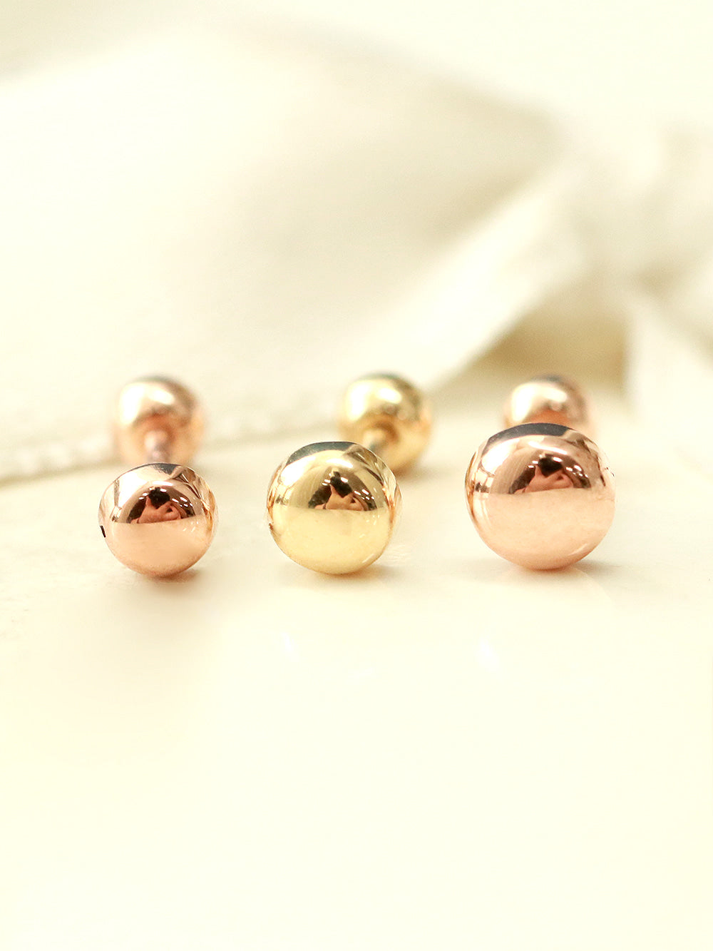 14K Gold Button Cartilage Earring 20G18G