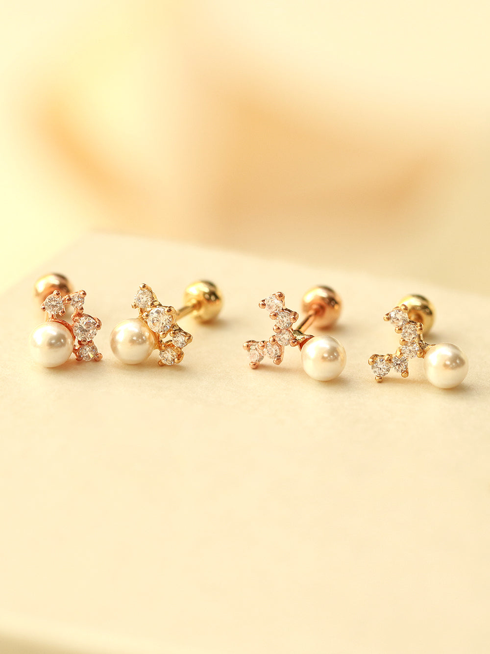 - 14K Solid Yellow Gold, 14K Solid Rose gold, Fresh Water Pearl, Swarovski Pearl
