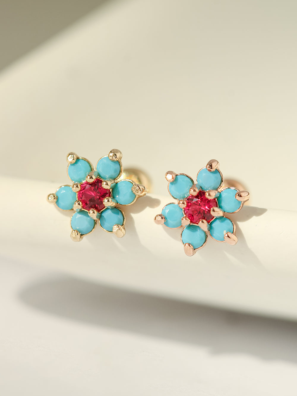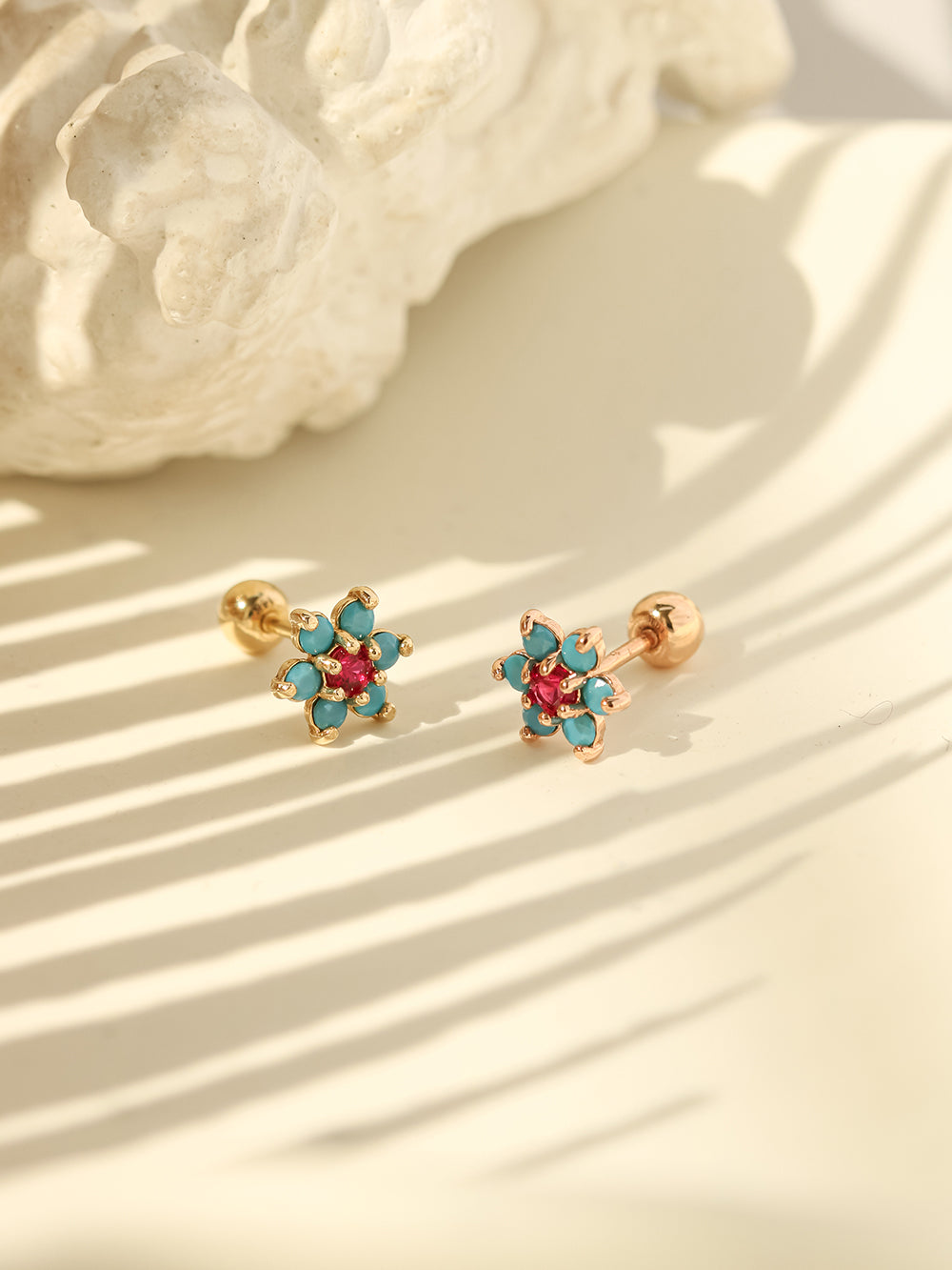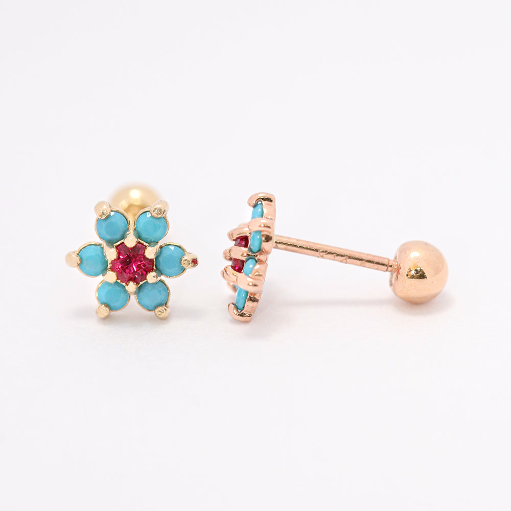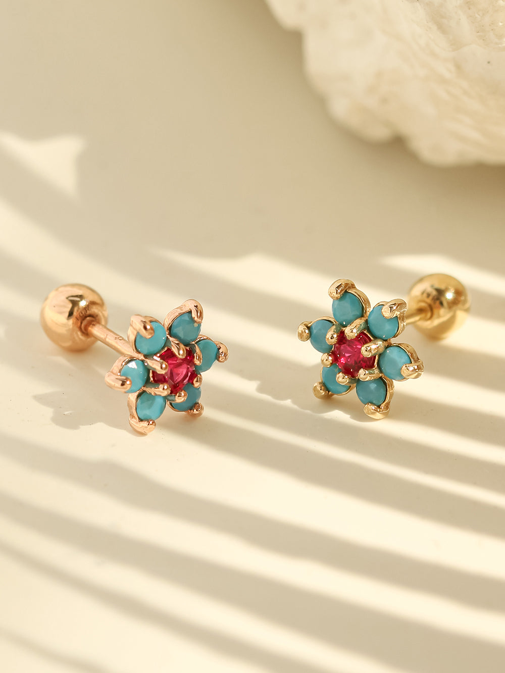 - 14K Solid Gold, Cubic Zirconia, Turquoise