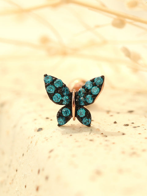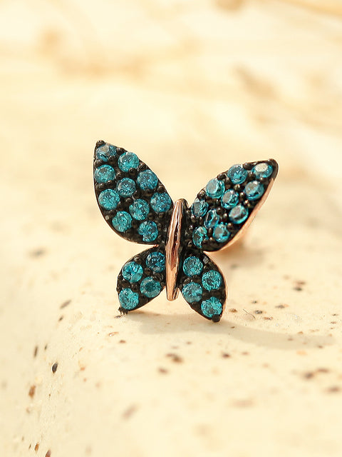- 14K Solid Gold, Cubic Zirconia, Blue Diamond