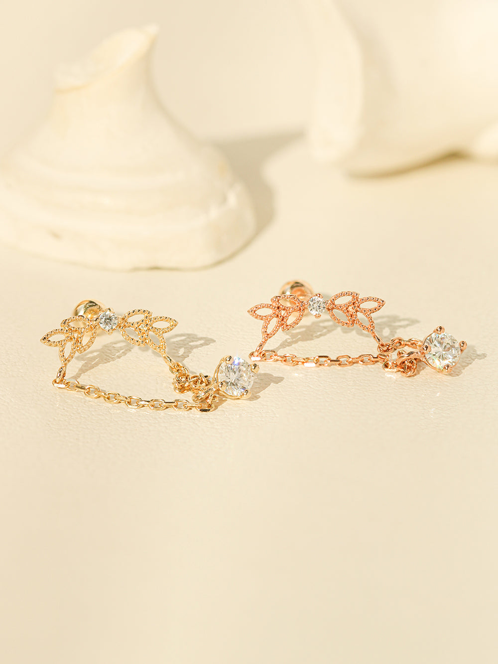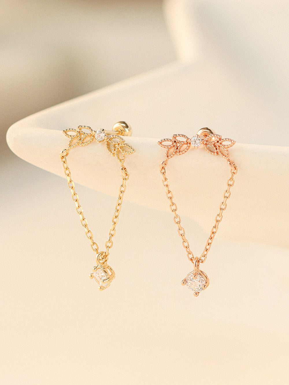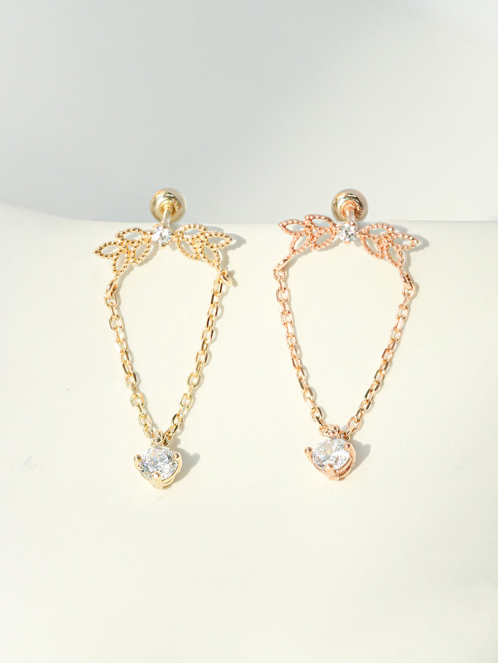 - 14K Solid Yellow Gold, 14K Solid Rose gold, Cubic Zircon