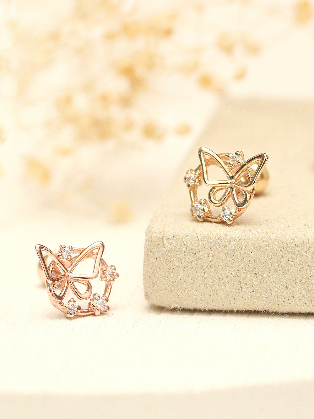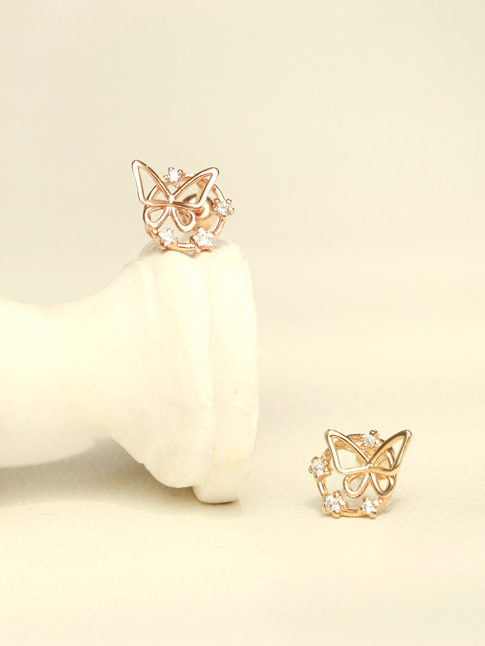14K Gold Cubic Circle Butterfly Cartilage Earring 20G18G16G