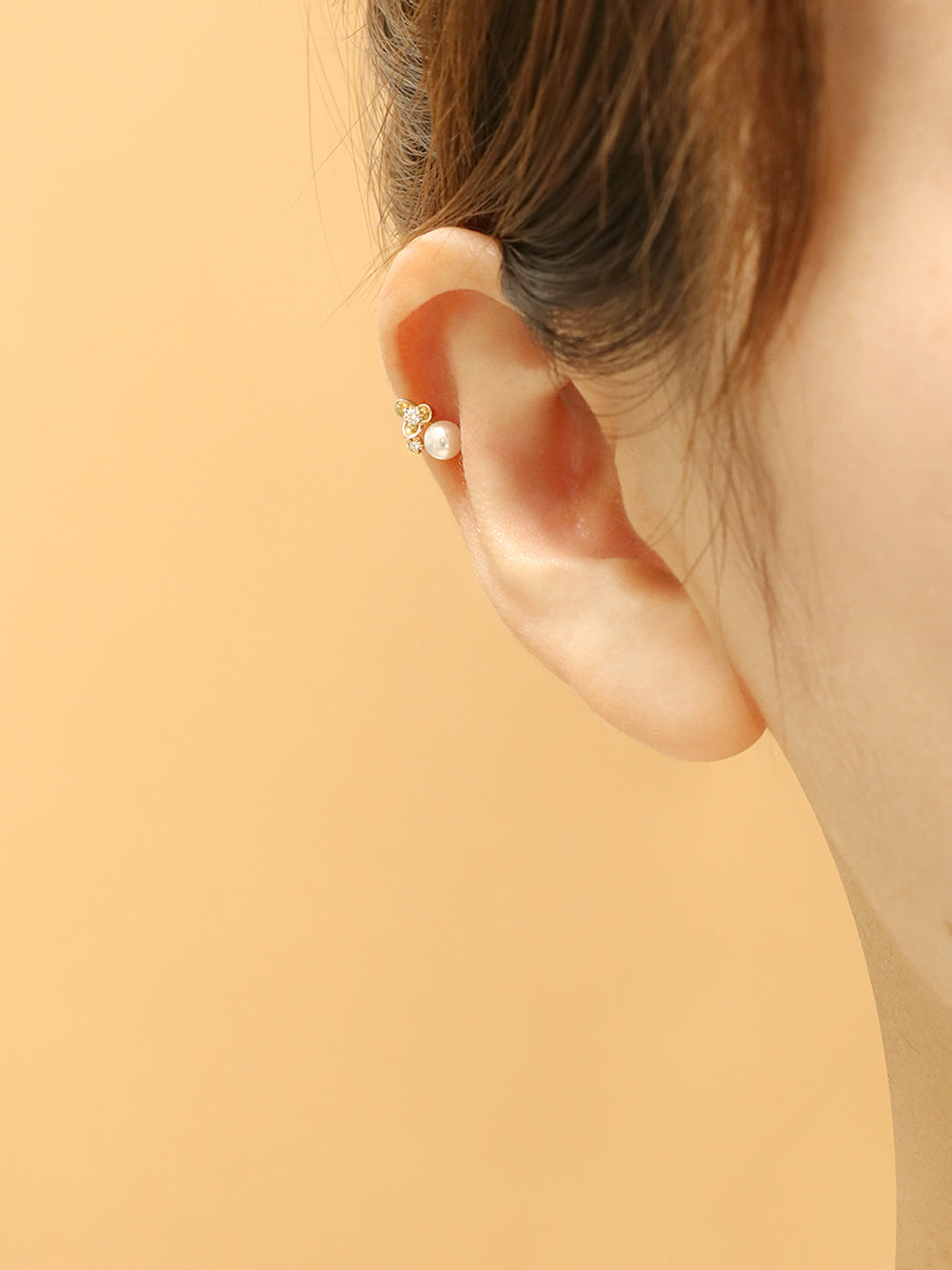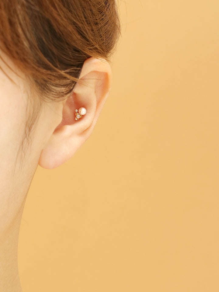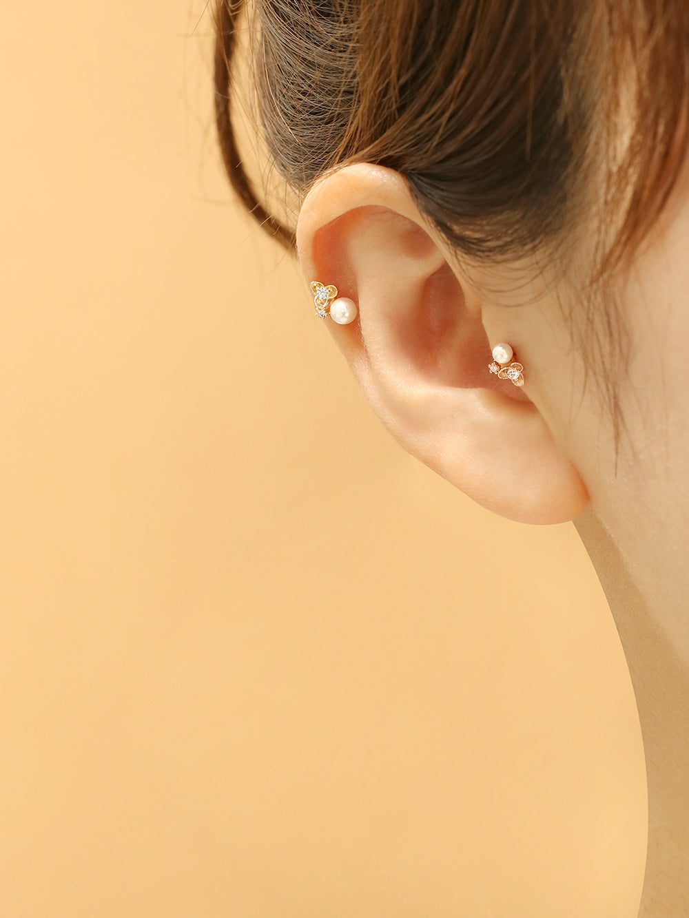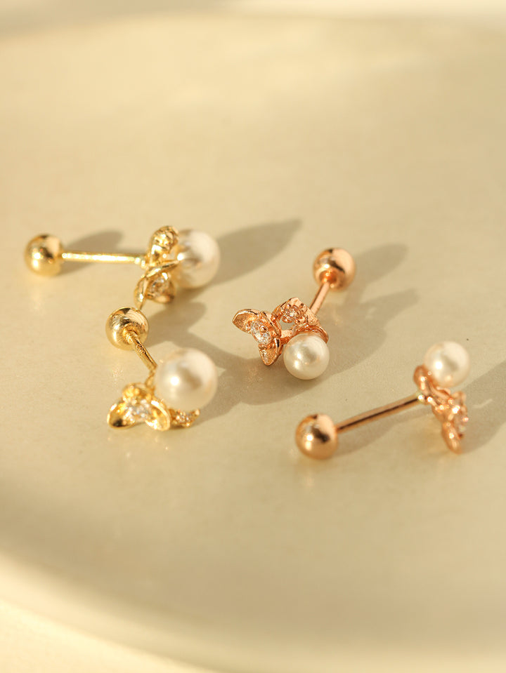 14K Gold Flower Pearl Piercing Earring 20G18G16G