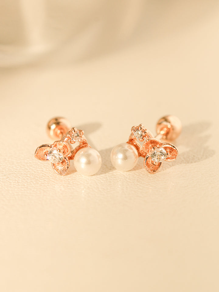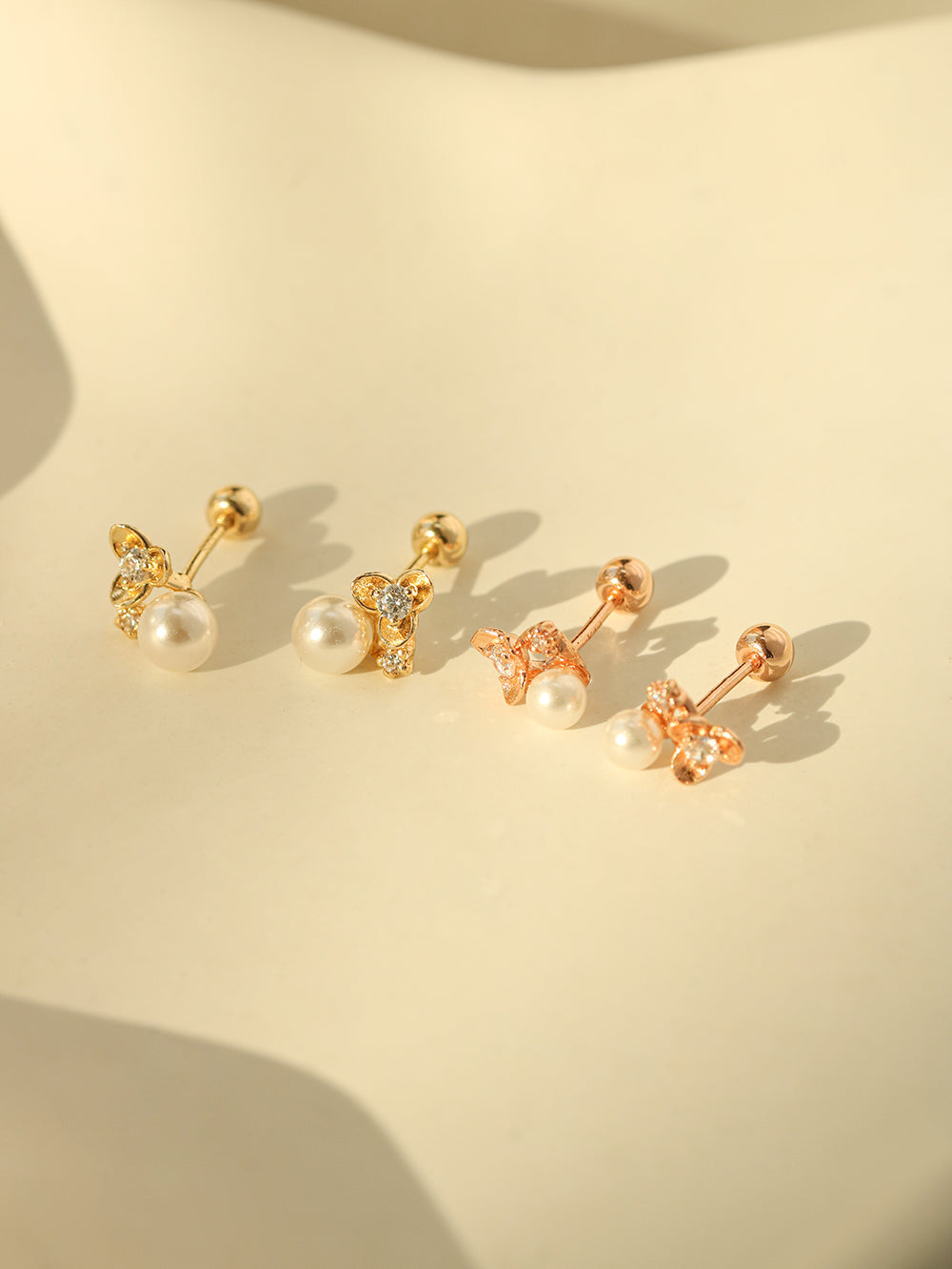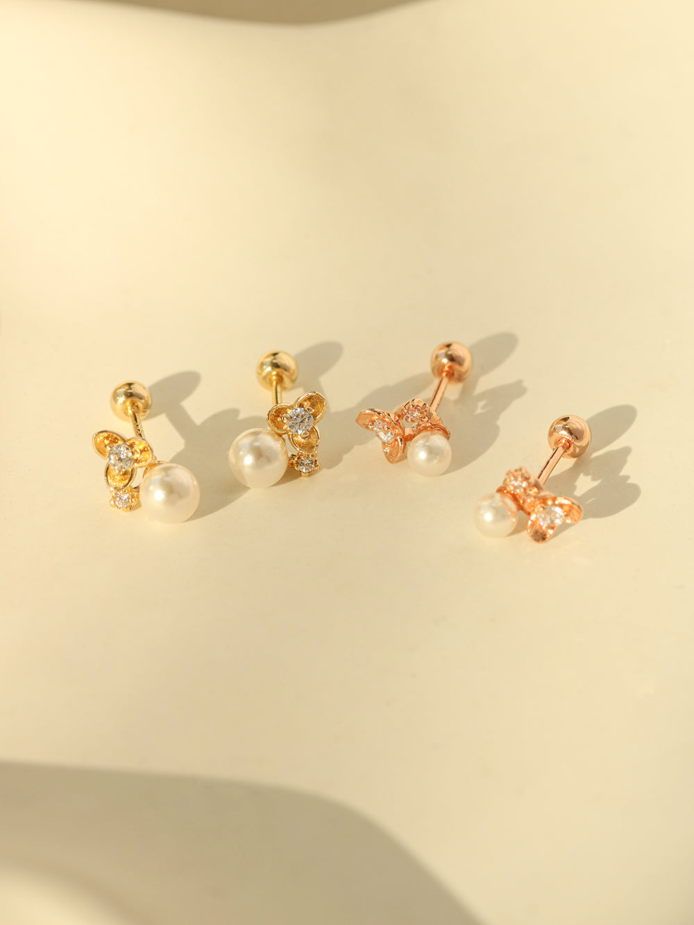 14K Gold Flower Pearl Piercing Earring 20G18G16G