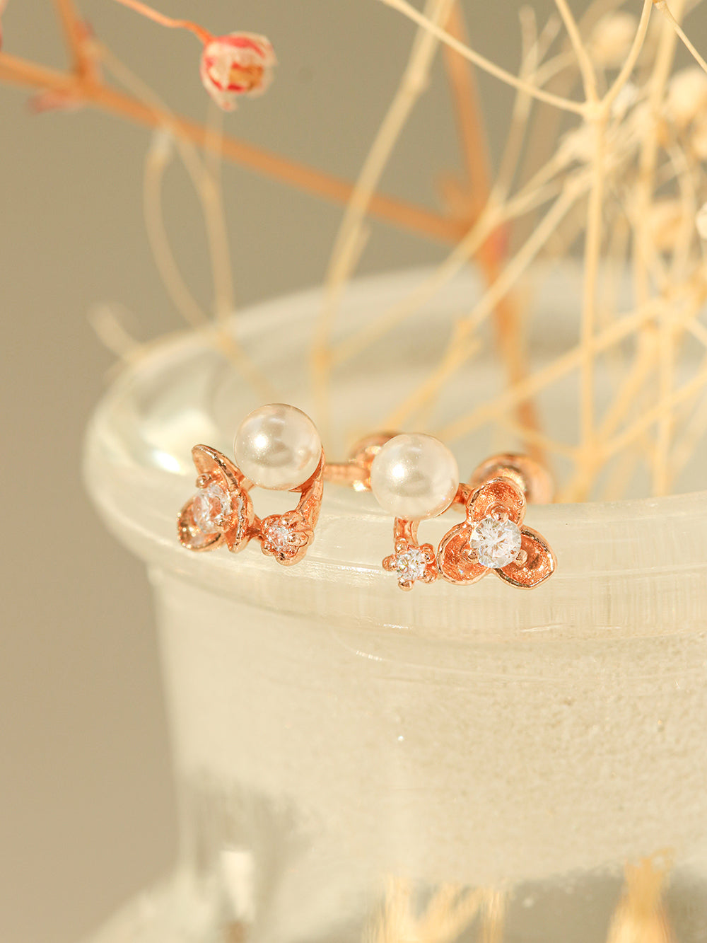 - 14K Solid Yellow Gold, 14K Solid Rose gold, Swarovski Pearl, Cubic