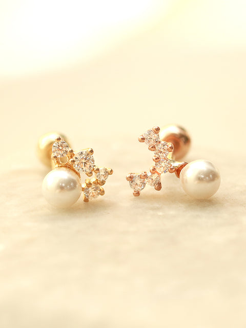 - 14K Solid Yellow Gold, 14K Solid Rose gold, Fresh Water Pearl, Swarovski Pearl