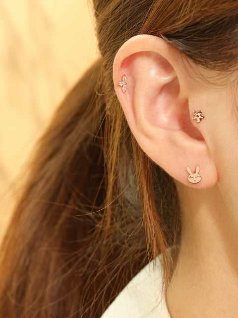 14K Gold Plain Five Petals Cartilage Earring 20G