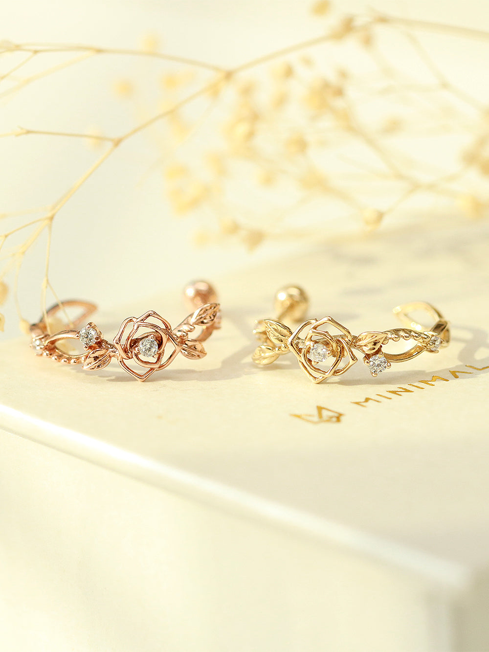 14K Gold Rose Cubic Curve Cartilage Earring 20G18G16G