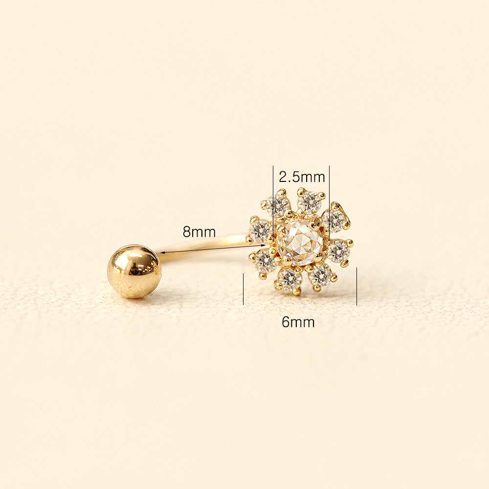 14K Gold Rose-Cut Daisy Curve Piercing 20G