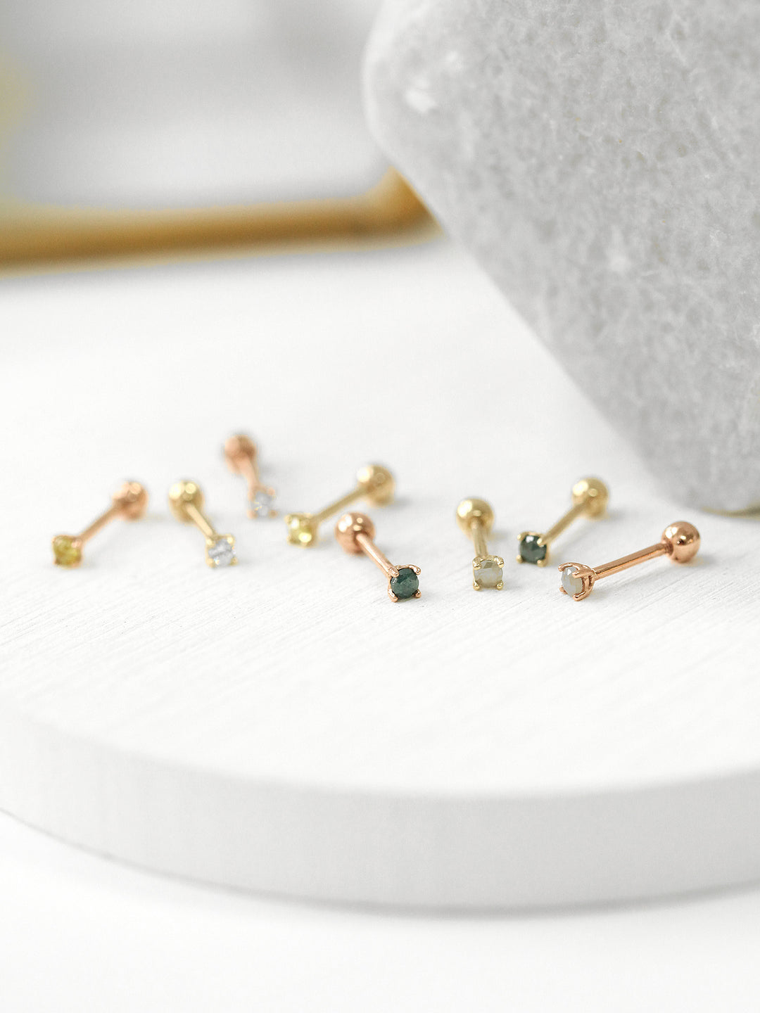 - 14K solid Gold, 14K solid Rose gold, Cubic Zirconia, Rough Diamond