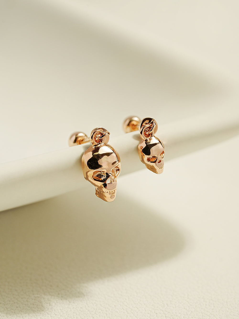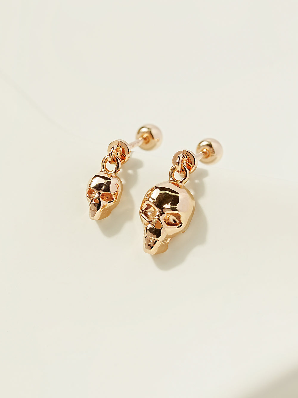 14K Gold Skull Drop Cartilage Earring 20G18G16G