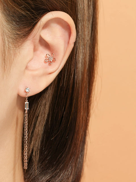 14K Gold Square Cubic Long Drop Chain Cartilage Earring 20G