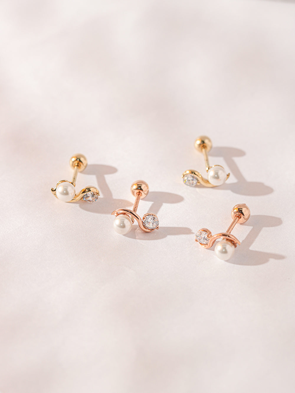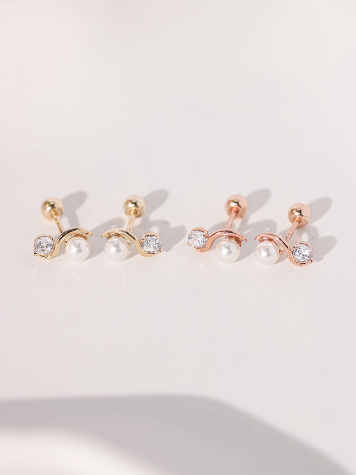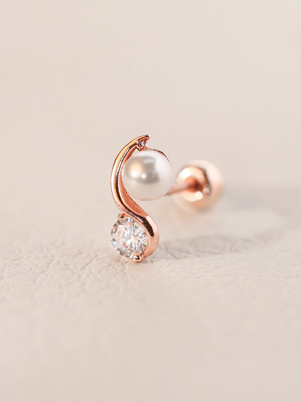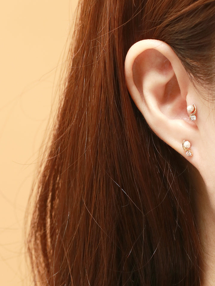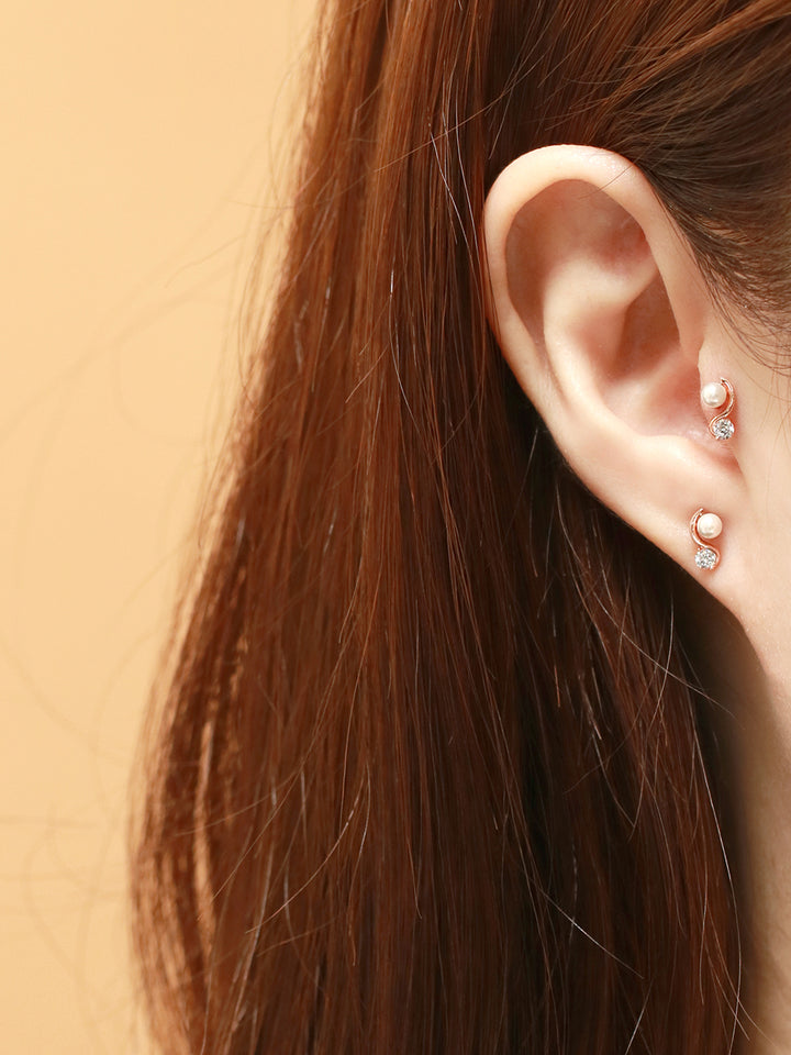 14K Gold Wavy Line Pearl Cubic Cartilage Earring 20G18G16G