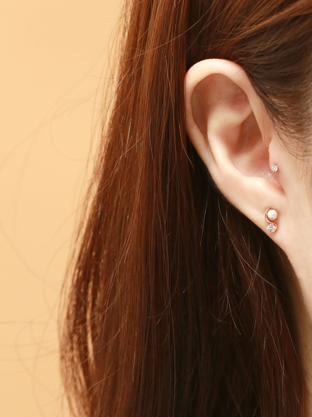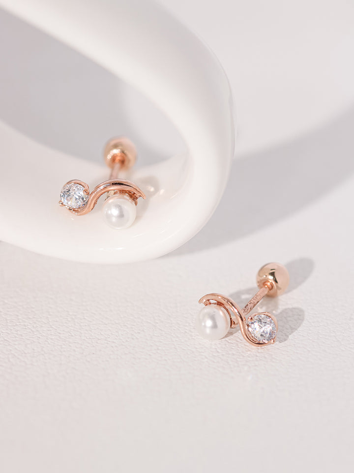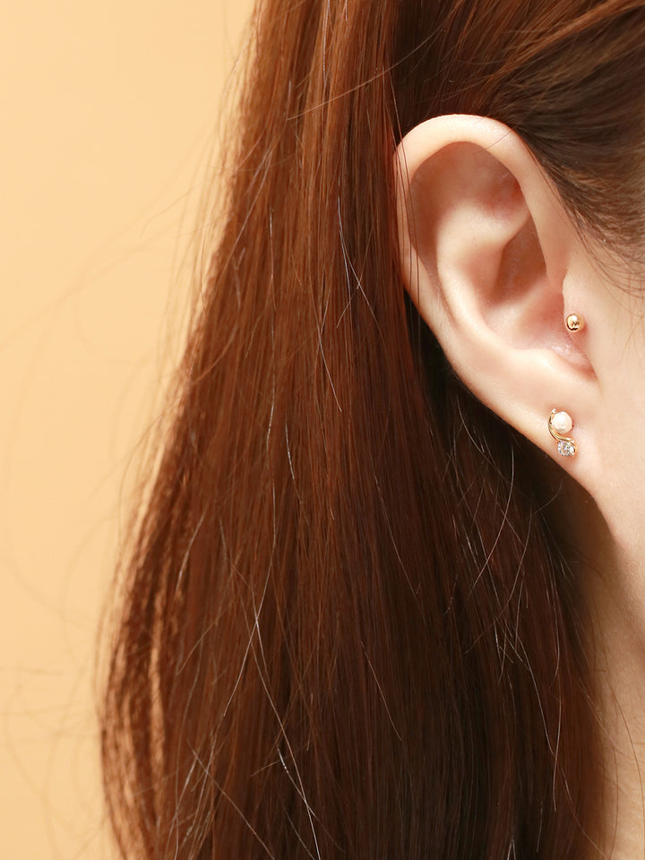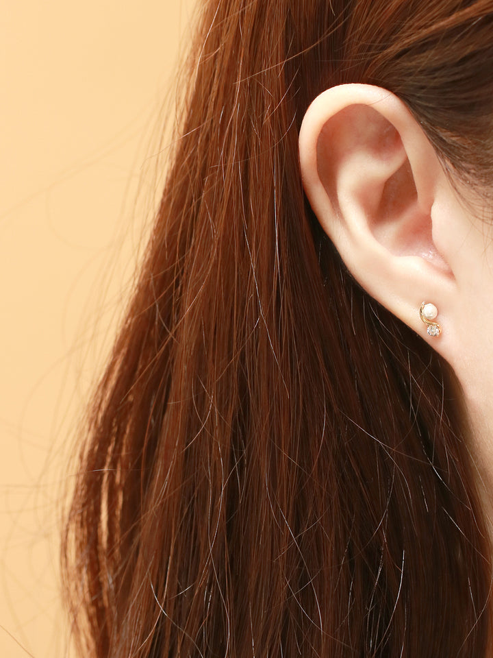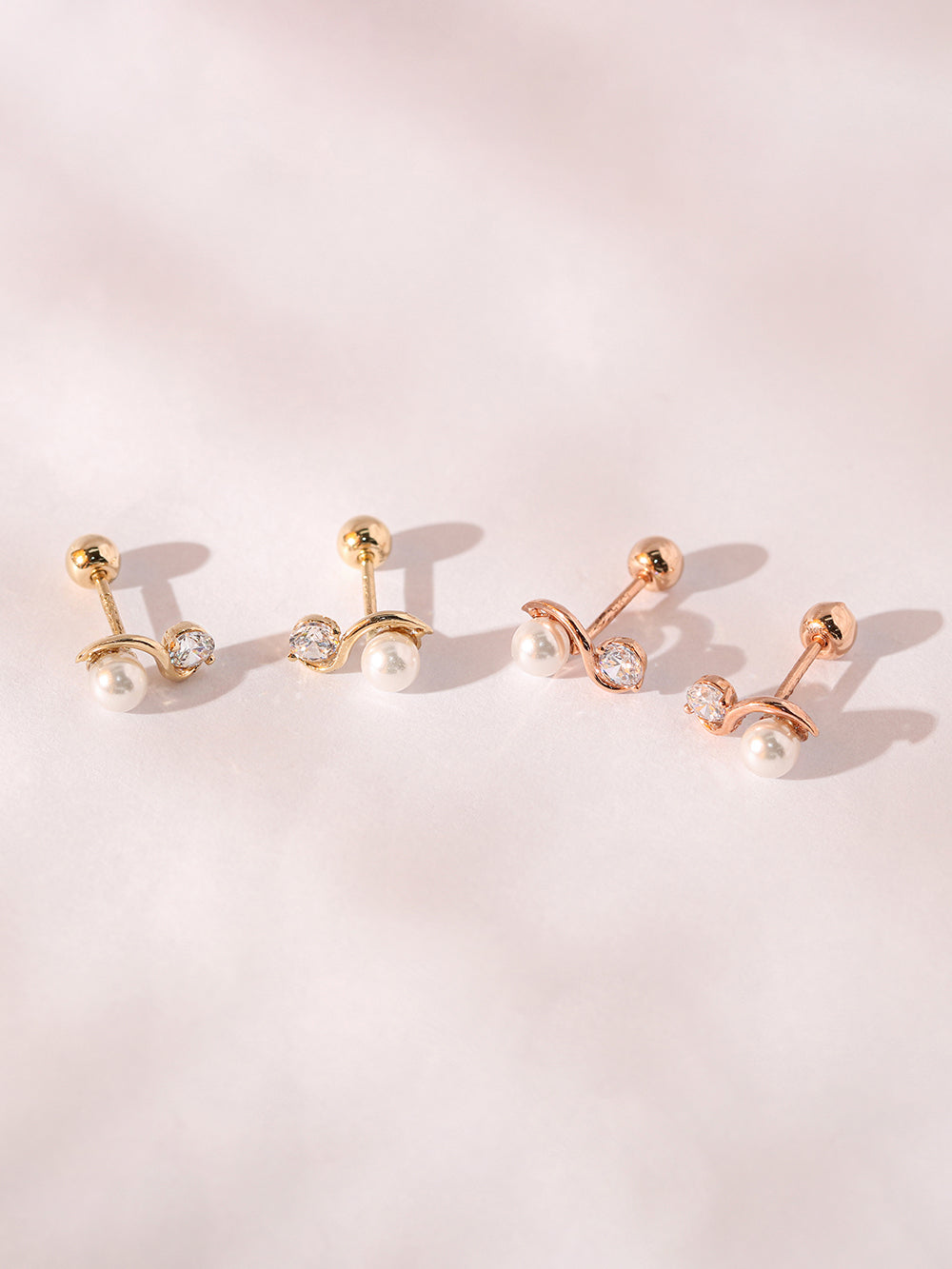 14K Gold Wavy Line Pearl Cubic Cartilage Earring 20G18G16G