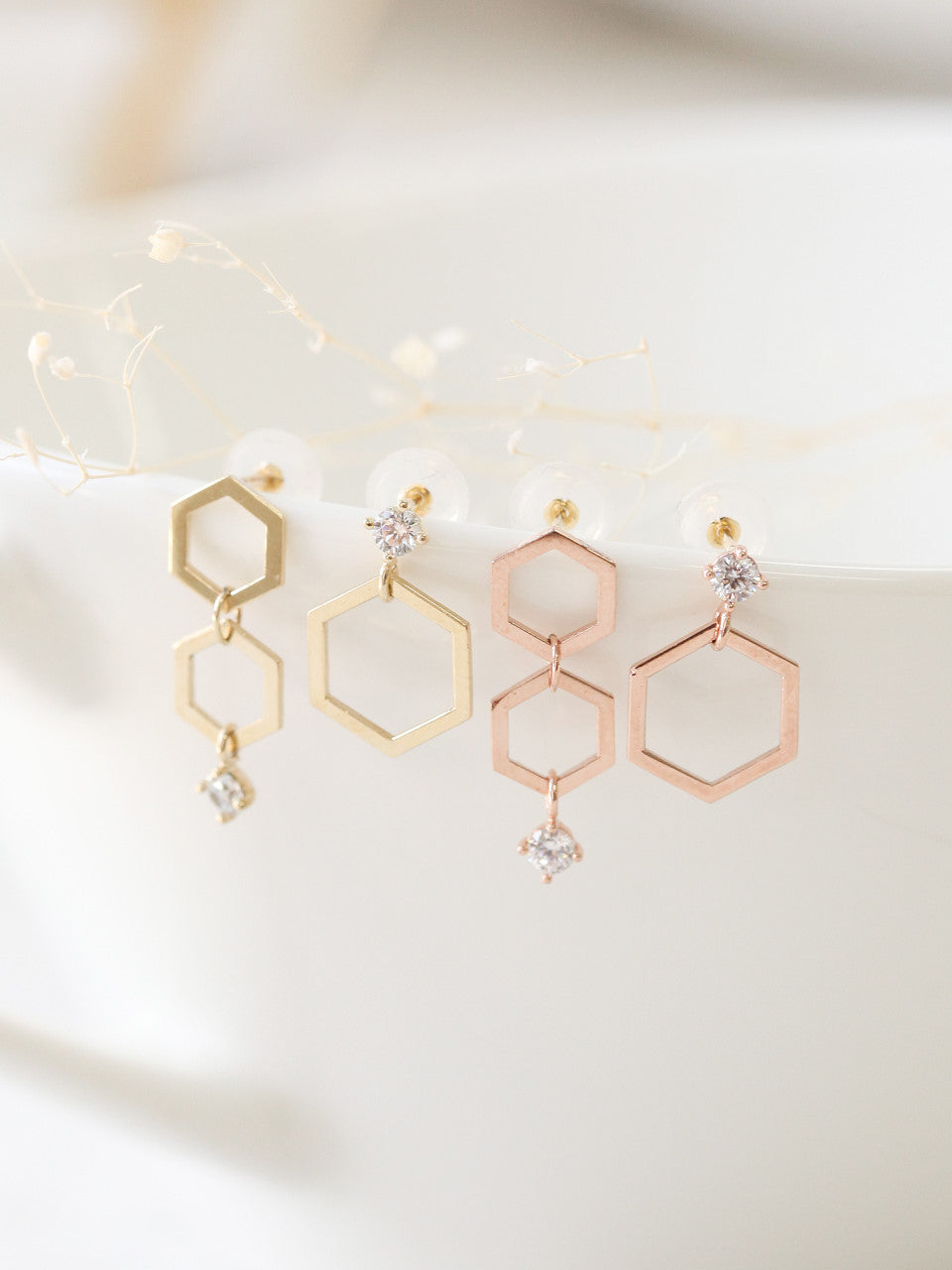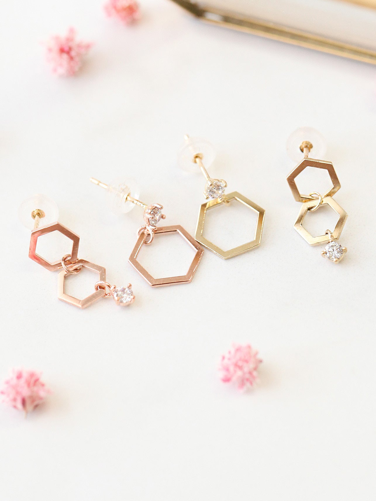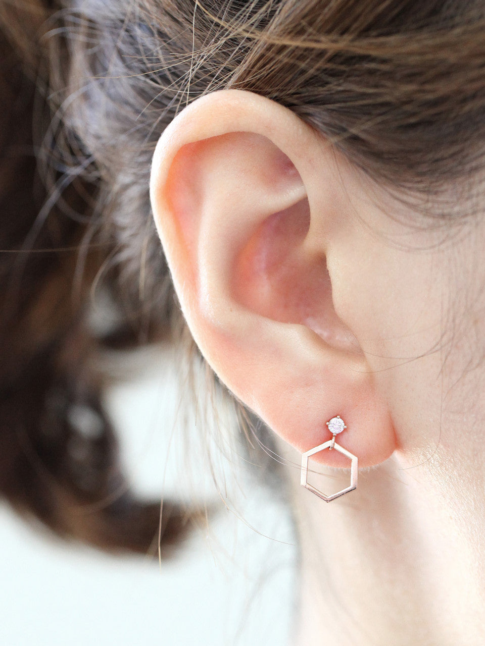 - 14K solid Gold, 14K solid Rose gold, Cubic Zirconia, 14K silicone back